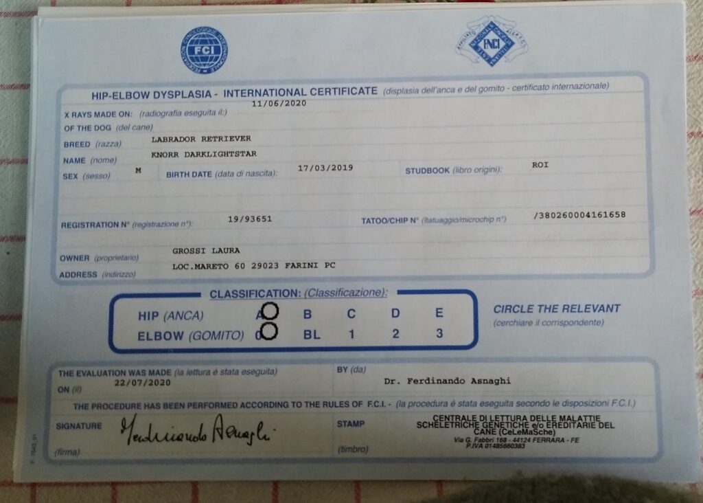 Lastrato per la displasia alle anche con esito HD A e i gomiti ED 0:0