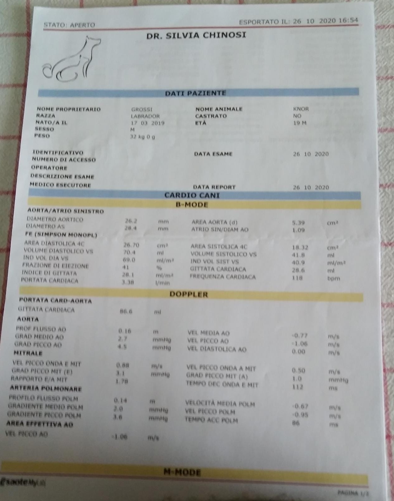 ECOCARDIODOPPLER svolto il 26/10/20 SANO