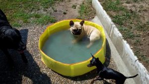 Ovviamente ho pensato a tutto: area ombreggiata e fresca per trovare ristoro durante il periodo estivo e per proteggere i nostri ospiti dalle piogge c’è una tettoia apposita. Per non far mancare proprio nulla, in estate viene messa ogni giorno una piscina piccola dove i cani possono rinfrescarsi.