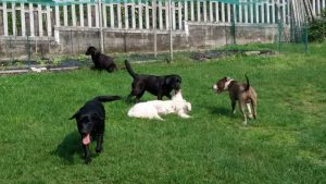 Ovviamente ci sono anche cani che non hanno piacere di stare insieme agli altri e per i quali ho pensato ad una soluzione che li faccia stare bene e che gli consenta comunque di svagarsi ed interagire: la giornata viene trascorsa in un piccolo recinto con varie uscite nell’area principale.