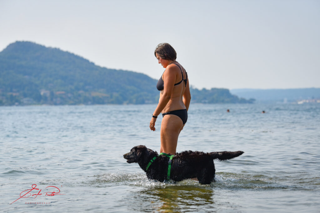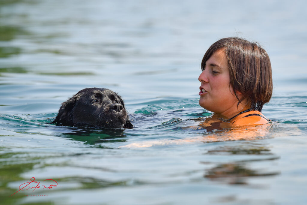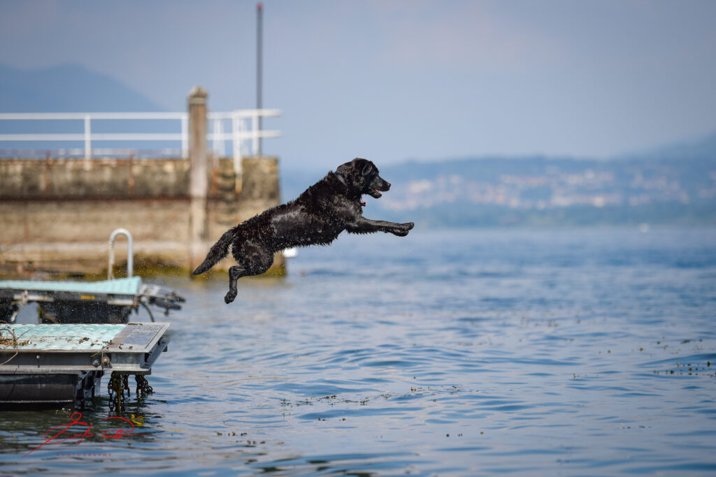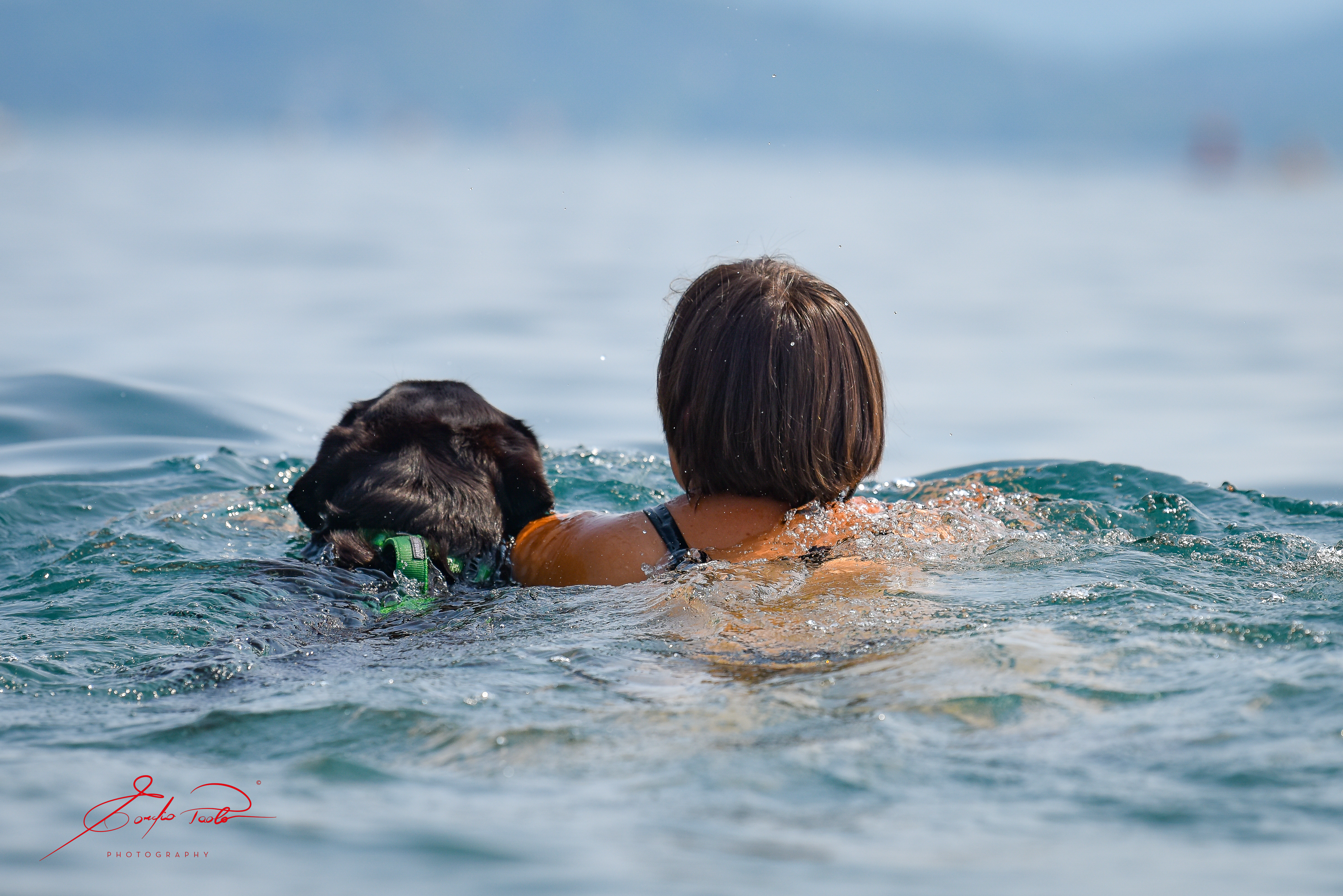 Con lei faccio ricerca in superficie e riporto e qualche esposizione di bellezza per seguire le orme di mamma e papà, facciamo Disc dog, facciamo freestyle in acqua,molte discipline perché ci piace tantissimo divertirci insieme 😍